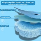 Warstwa z detergentem, delikatna struktura nie rysująca ceramiki, biodegradowalny materiał gąbki